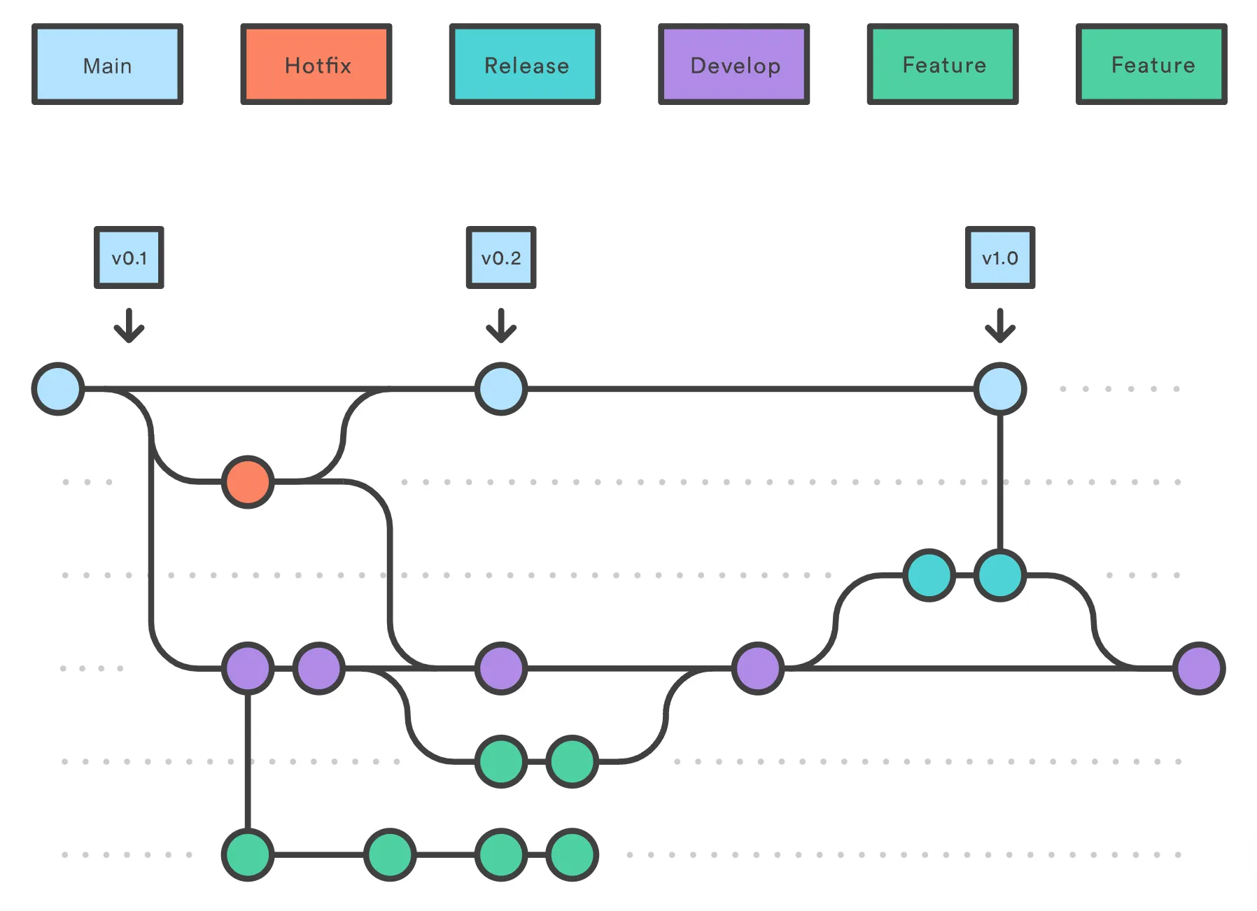 main๊ณผ develop์ ์ฑํฌ๊ฐ ๋๊ฐ์์ผํจ. ๊ฐ๋ฐ์๋ ์์ ๋ธ๋ฐ์น์ธ feature๋ฅผ ์์ฑํด์ ๊ฐ๋ฐ์ ์งํ. ๊ฐ๋ฐํ๋ค๊ฐ ๋ง์์ ์๋ค๋ฉด ๋ ๋ฆฌ๋ฉด ๋จ. ๋ง์์ ๋ ๋ค๋ฉด, feature ๋ธ๋์น๋ฅผ develop์ ๋จธ์งํ๊ณ feature์ ๋ ๋ ค๋ฒ๋ฆฌ๋ ๋๋.
