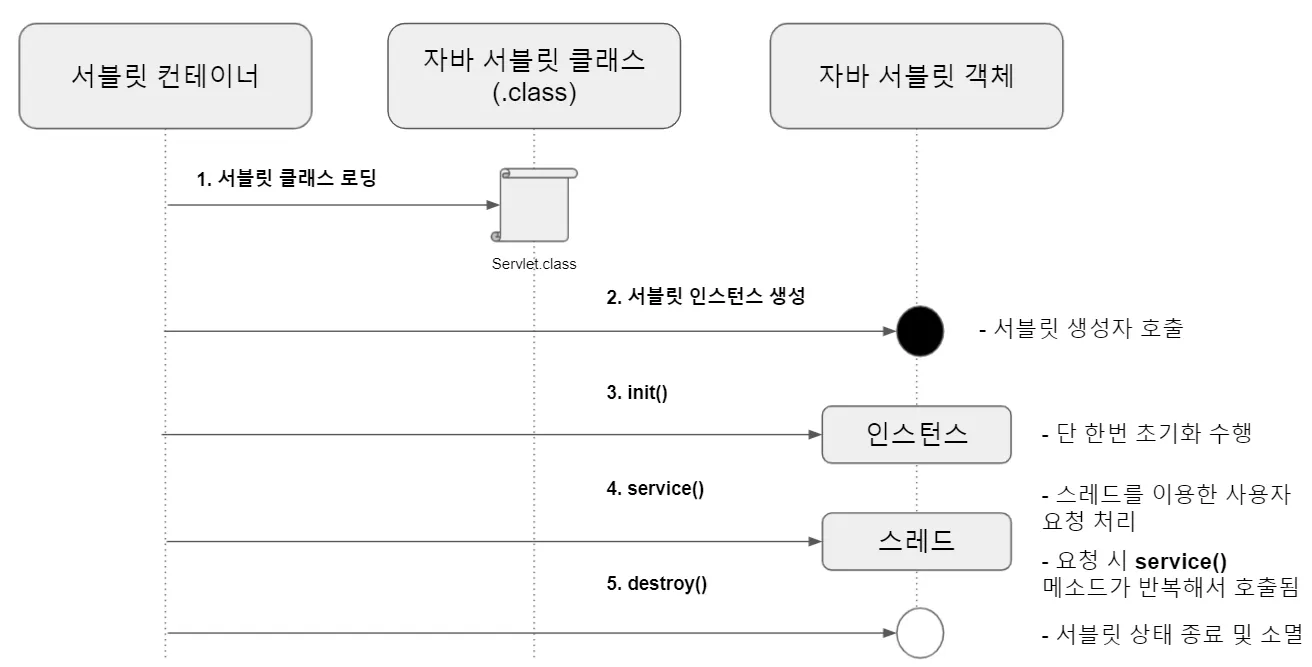 ์๋ธ๋ฆฟ์ ์์ฑ ์ดํ์ย init()ย ๋ฉ์๋๋ฅผ ํตํด ์ด๊ธฐํ๋๋ค.