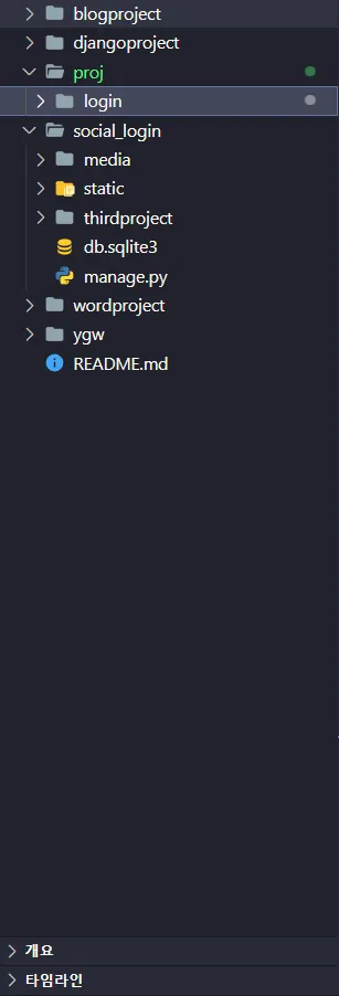 내부의 앱을 외부에서 사용할 것이기 때문에, 앱을 외부로 빼줘야한다. 프로젝트와 같은 깊이의 경로에 proj 폴더를 만든다. 다음 login 앱을 그대로 드래그 해 proj 폴더에 넣는다.