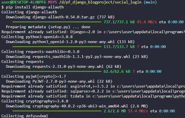 pip install dajngo-allauth를 입력해 allauth 패키지를 설치한다.