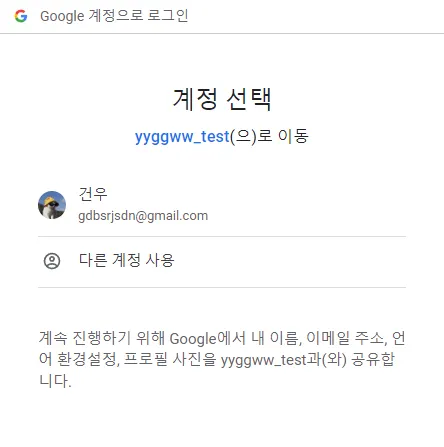 구글 로그인을 클릭하면,