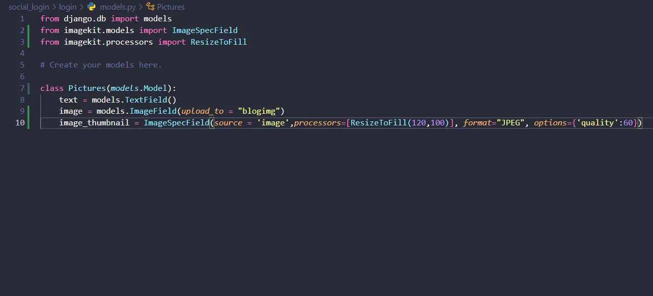 imagekit 기능을 views.py에서 사용하기 위해 해당 앱을 import한다.