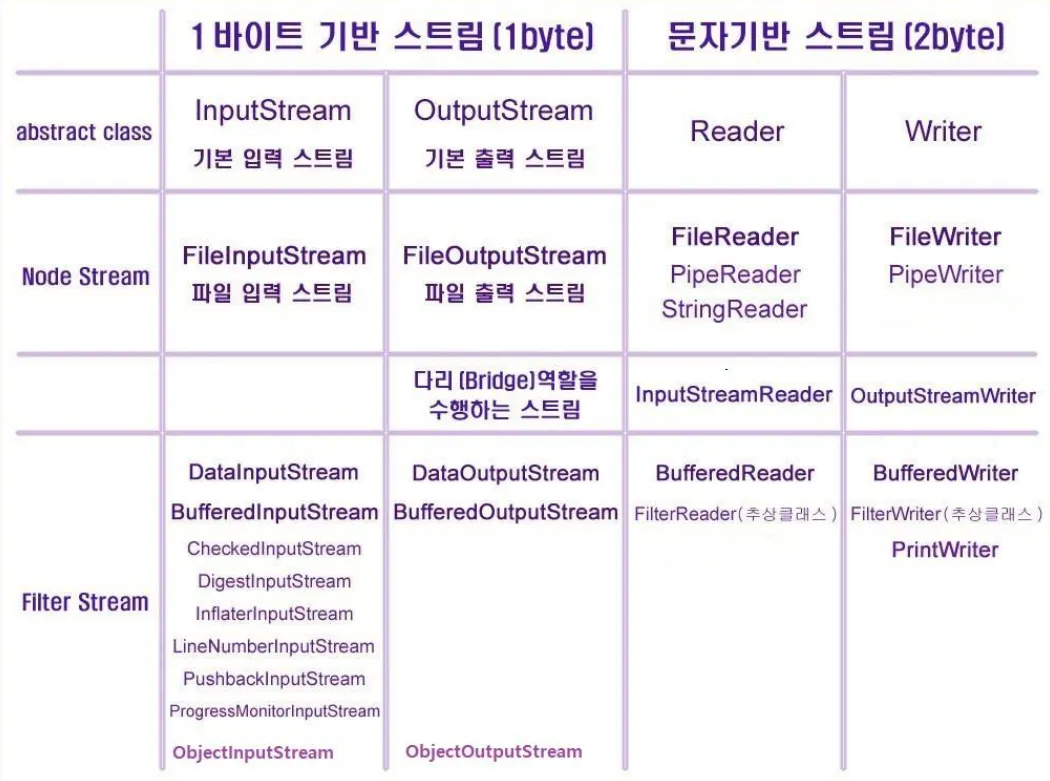 byte 기반 스트림 (1byte 단위로 데이터가 이동)