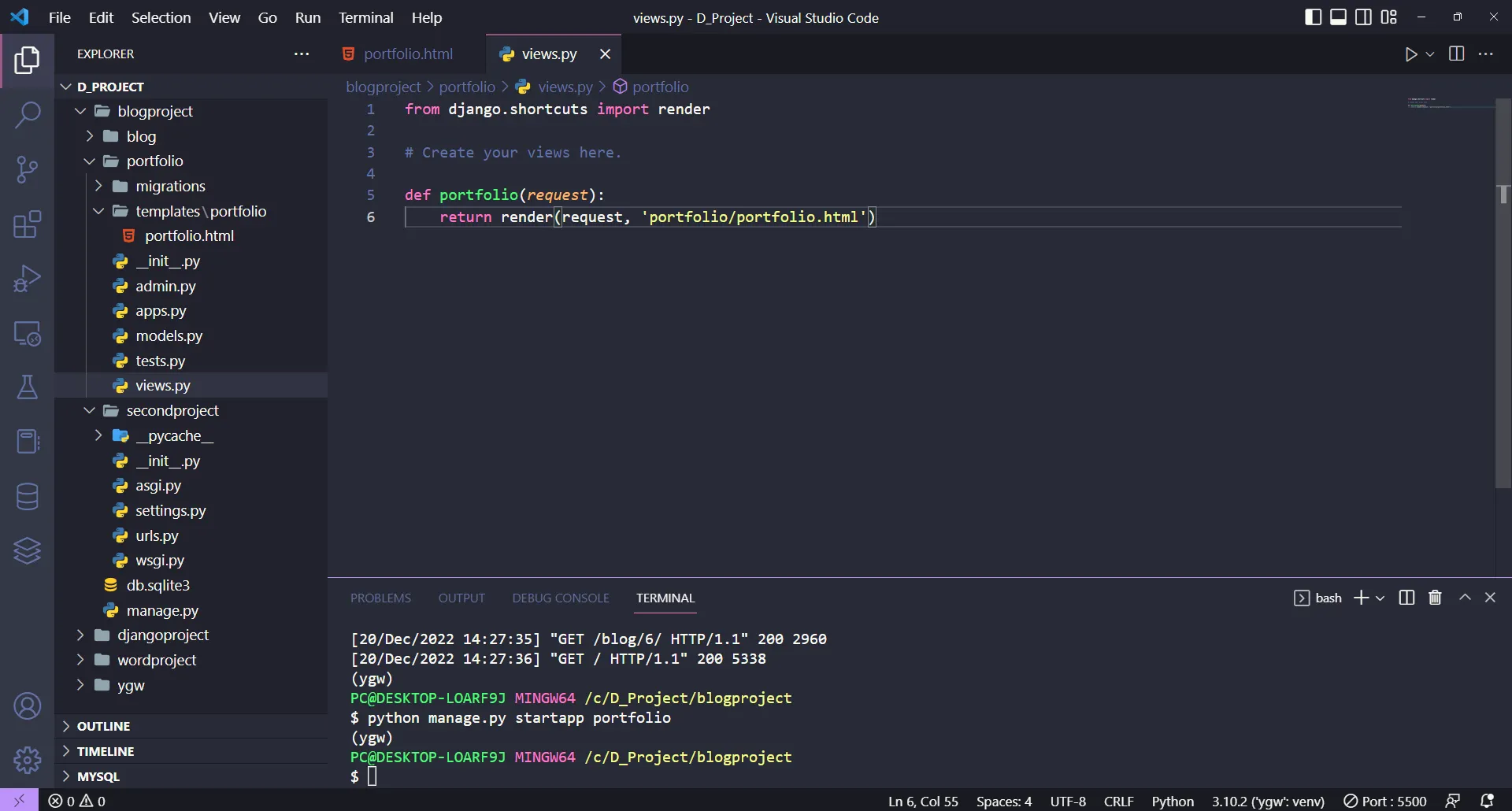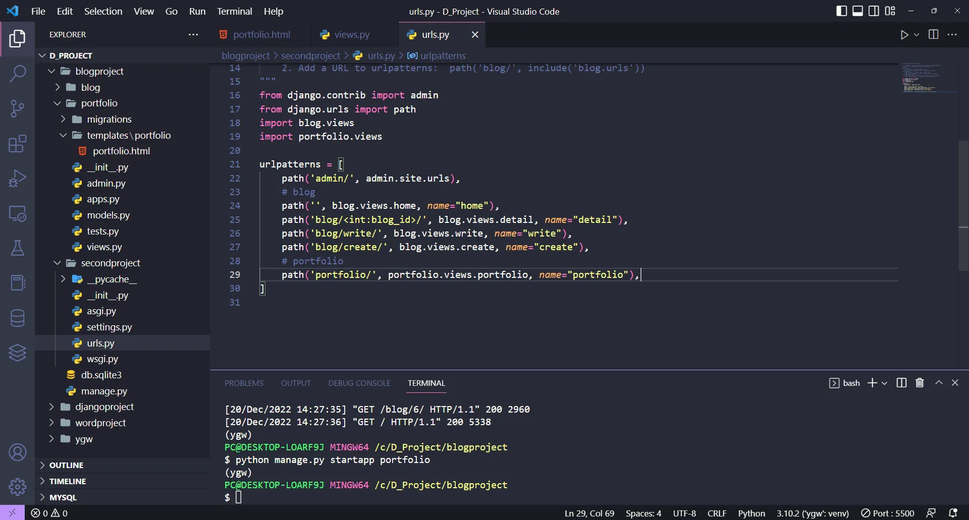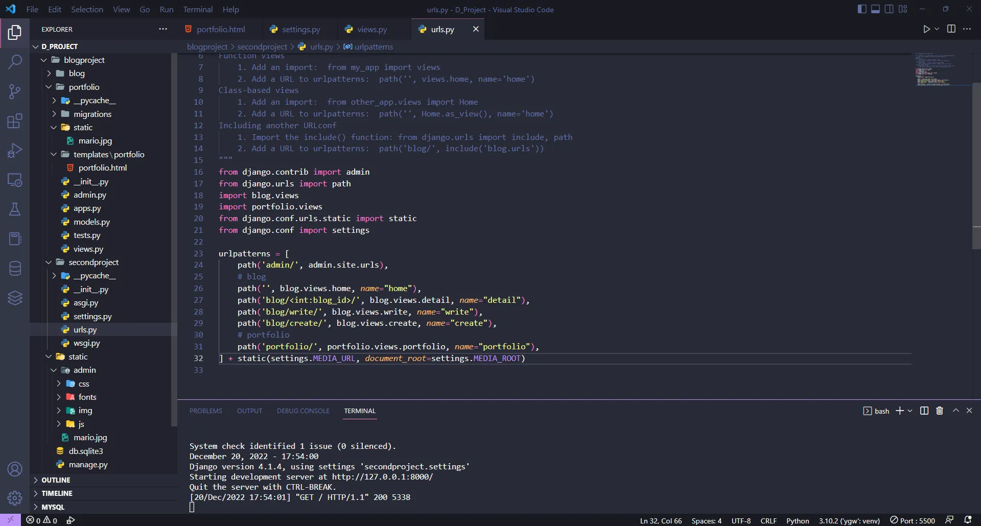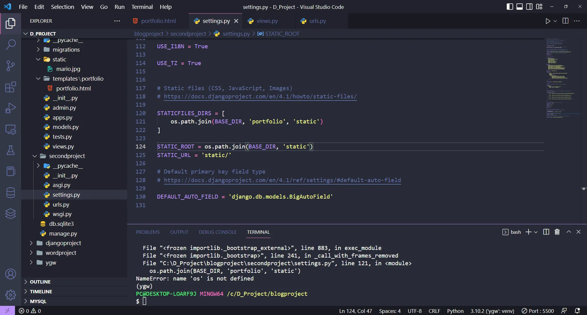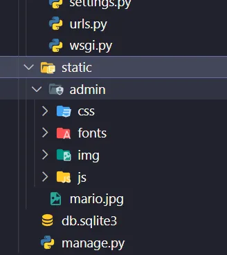모두 잘 만들었으면, 다음과 같이 blogproject의 하위 폴더에 static 폴더가 생긴다.