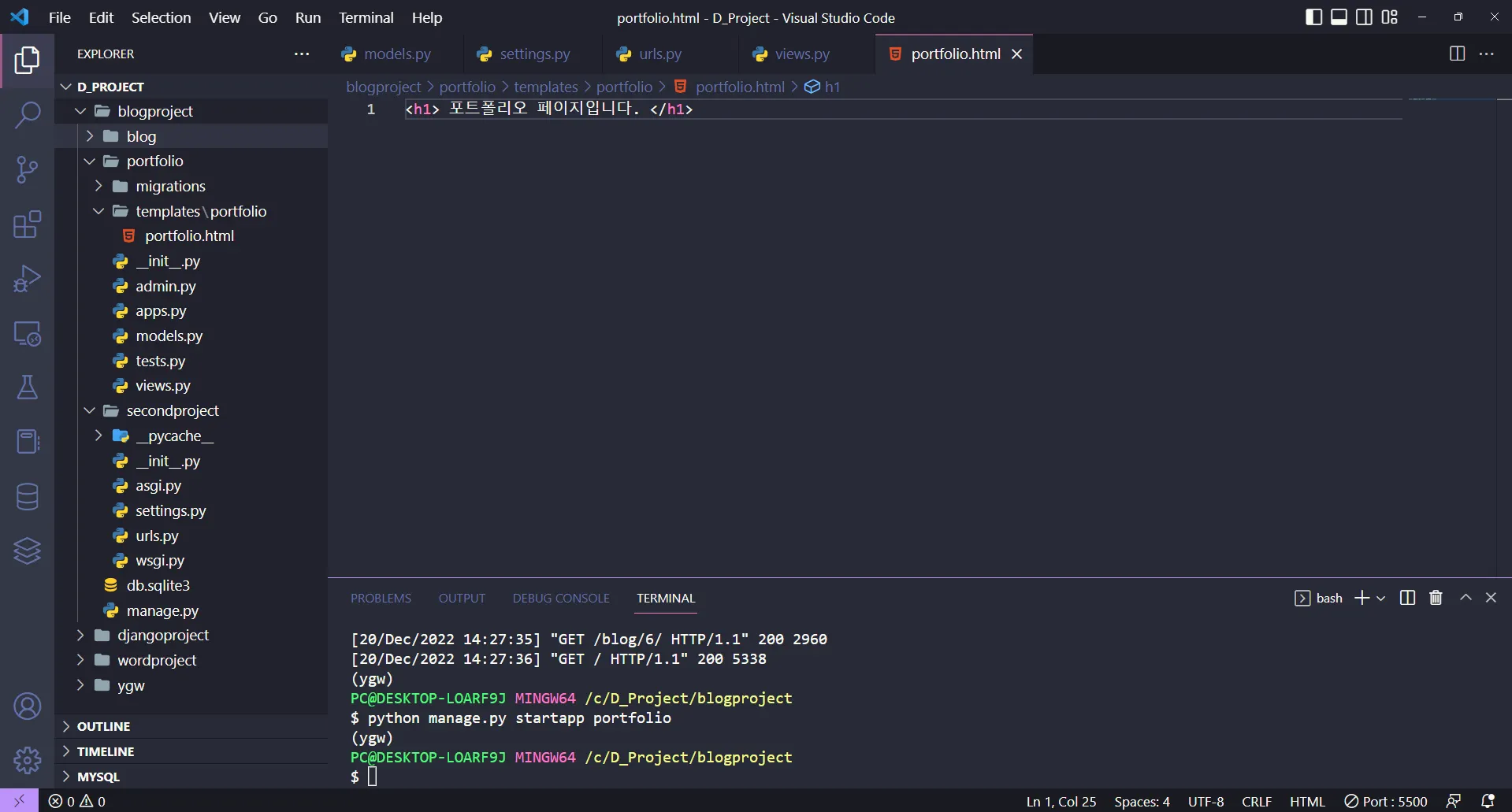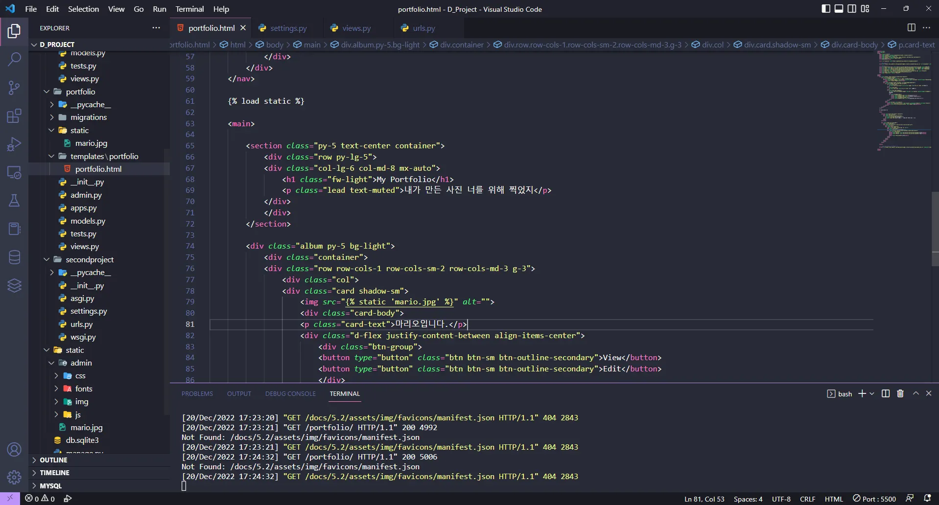 먼저 static 파일을 이용하여 portfolio 파일에 사진을 첨부해 보자.