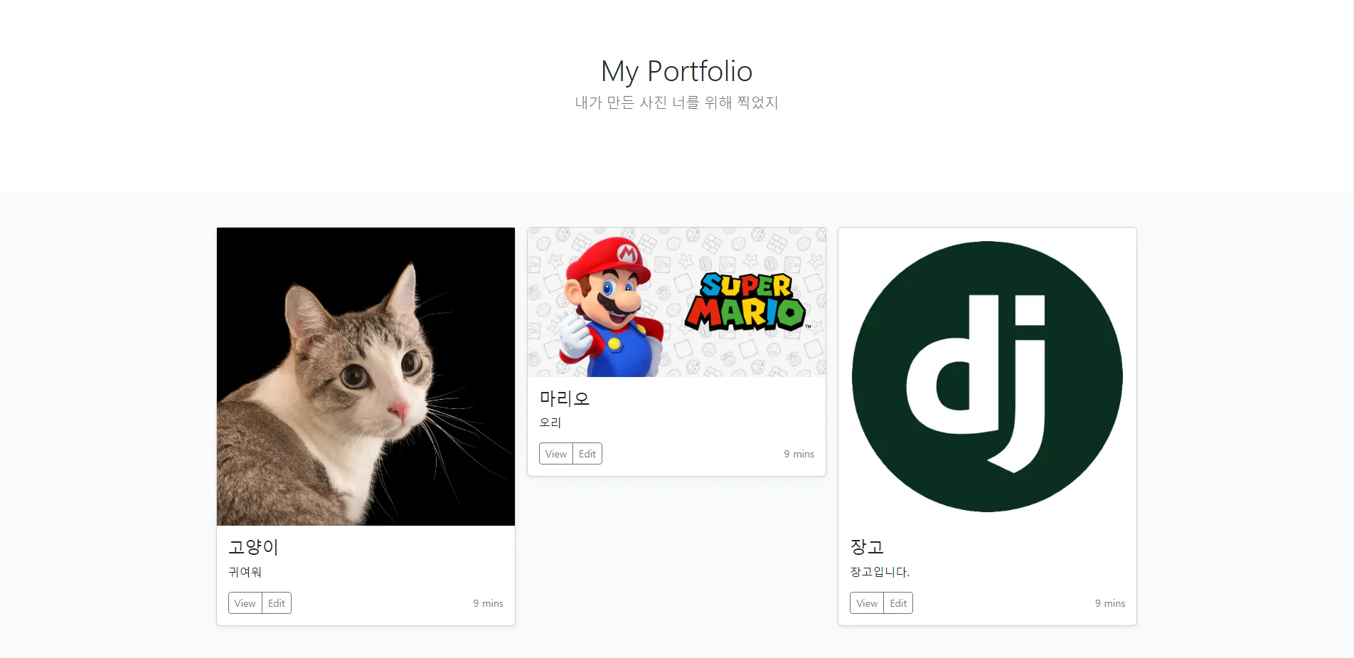 앞에서는 글을 쓰는 블로그 게시판을 구현했다. 이번에는 사진을 보여주는 포트폴리오 페이지를 만들어 보자.