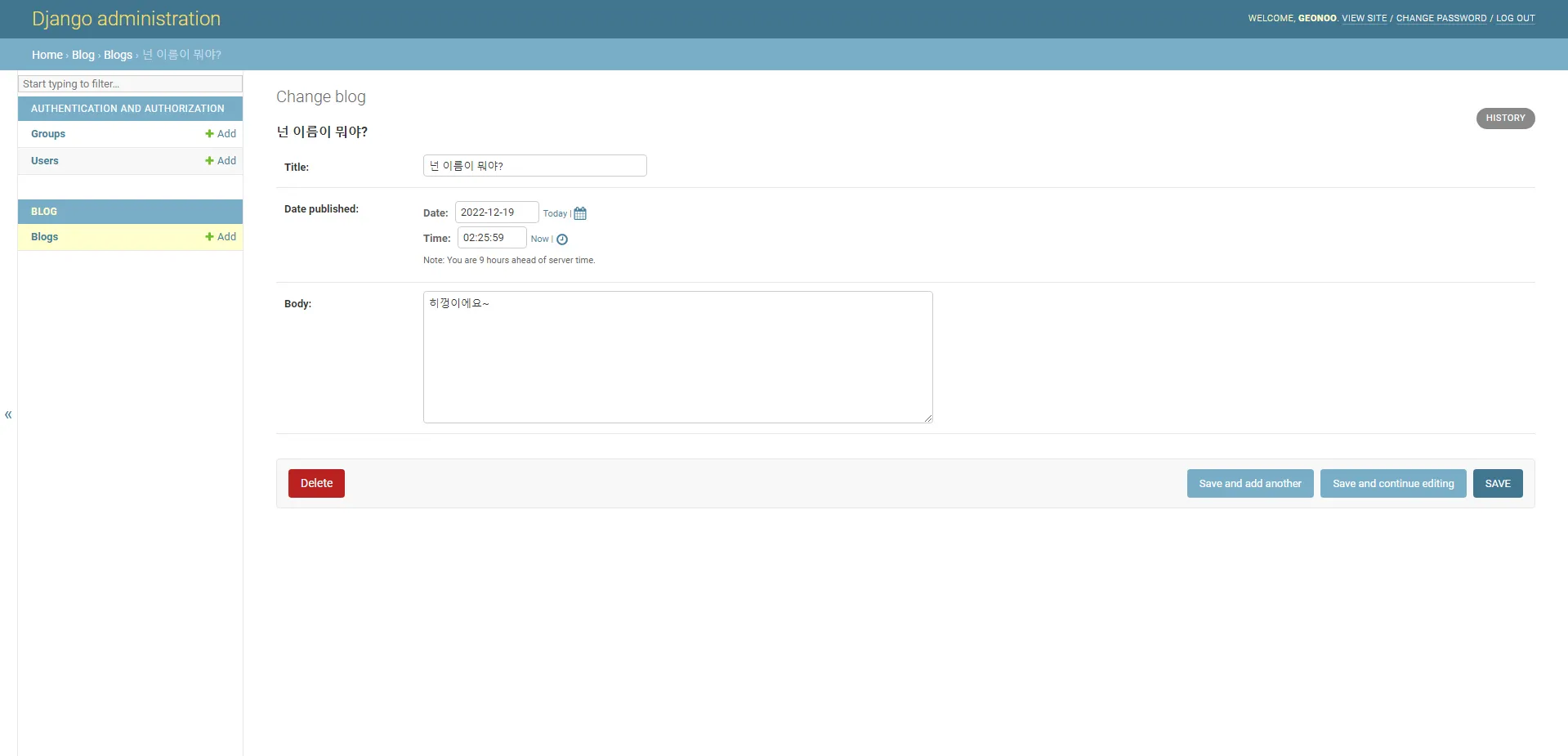 ์ด์ ์ ๋ง๋ค์ด์ก๋์ง ํ์ธ์ ํด์ผํ๋ค. ๋ฐ๋ก ๊ฒ์๊ธ์ ์ง์ ๋ฑ๋กํด๋ณด๋ ๊ฒ. ์ด๋ด๋ ์ ์ฉํ๊ฒ ์ธ ์ ์๋ ์ฌ์ดํธ๊ฐ ์๋ค. ๋ฐ๋ก adminํ์ด์ง์ด๋ค.