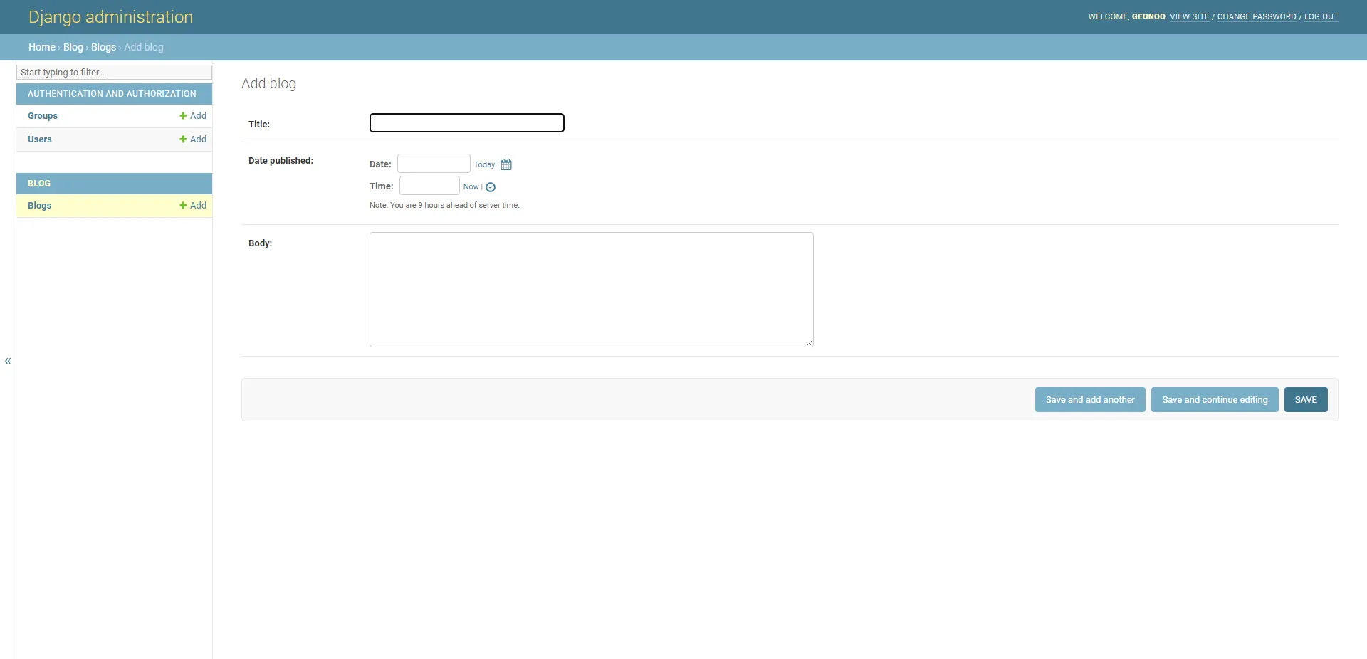 models.py์ ์ ์๋ ๋ด์ฉ๋ค์ด admin ํ์ด์ง์์ add blog ํ์ด์ง์ ์์์ ๊ฒฐ์ ํ๋ ๊ฒ์ด๋ค.