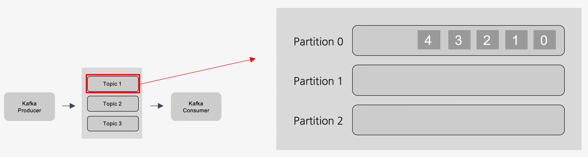 파티션 내부에서 각 데이터(메시지)는 offset(고유 번호)로 구분됨