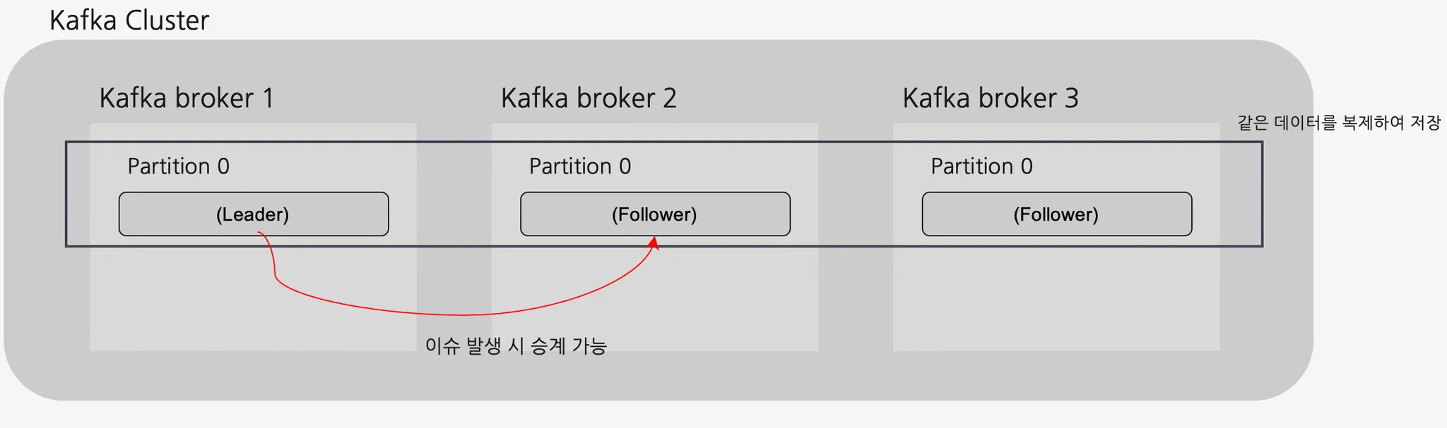 브로커가 갑자기 사용불가하게 되더라도, 복제된 다른 팔로워 파티션을 통해 기능을 정상적으로 수행 가능