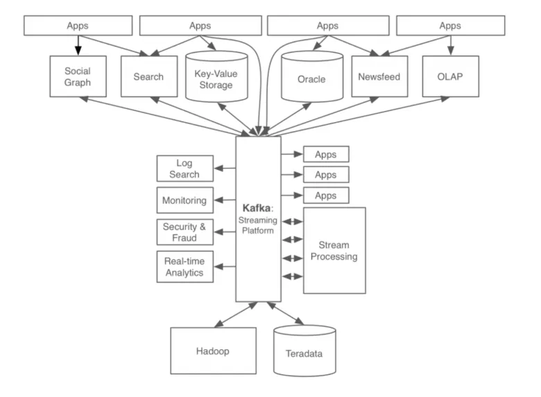 이러한 문제들을 해결하기 위해 모든 이벤트와 데이터의 흐름을 중앙에서 관리하는 카프카(Kafka) 개발