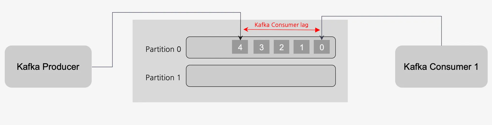프로듀서가 넣은 데이터의 오프셋과 컨슈머가 마지막으로 읽은 오프셋 간의 차이를 컨슈머 랙(Lag)이라고 함