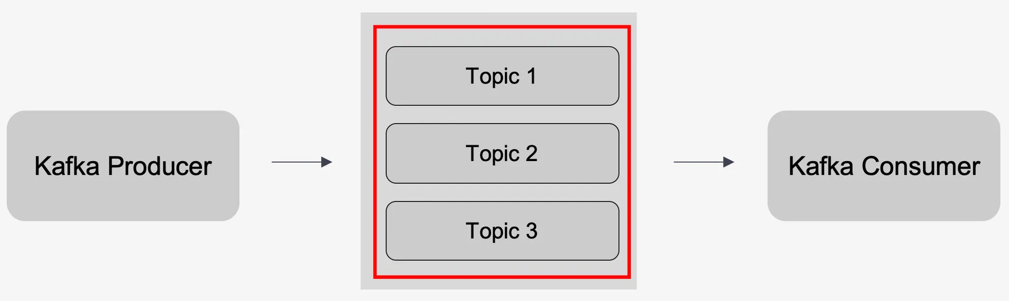 카프카에서 메시지를 구분하는 단위 (DB 테이블 또는 파일 시스템의 폴더와 유사)
