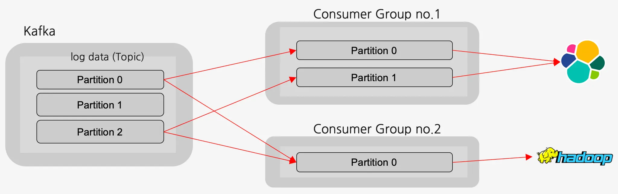 컨슈머 그룹들끼리는 서로 영향을 미치지 않음 (토픽 안에 있는 데이터 변경 X)