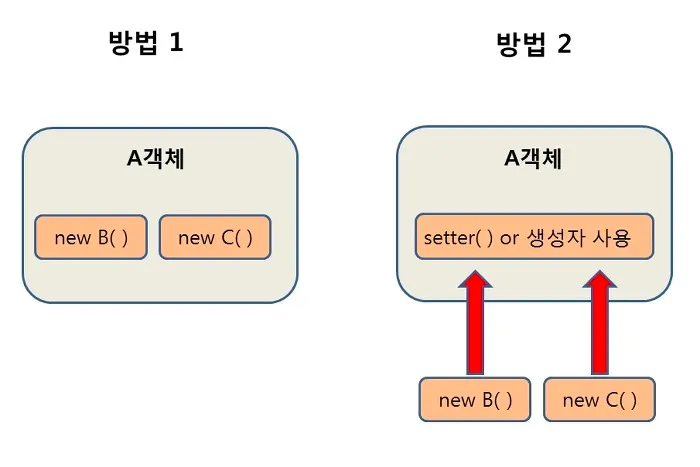 DI(dependency injection) - 스프링이 다른 프레임워크와 차별화되어 제공하는 의존 관계 주입 기능으로, 객체를 직접 생성하는 게 아니라 외부에서 생성한 후 주입 시켜주는 방식이다. 클래스 많아져..? 사용자 많아져..? 내가 객체 관리해줄게.!!