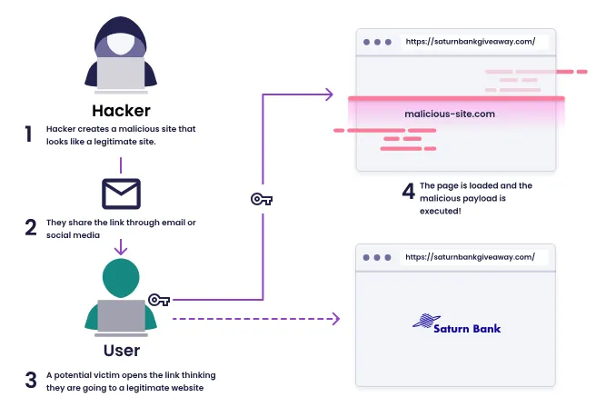 사용자는 자신의 계정에 로그인한 후 위조된 코드가 포함된 페이지에 접근한다. 위조된 페이지에는 사용자를 대신해 실행할 스크립트가 들어 있다. 사용자가 접근 시, 브라우저는 이 스크립트를 실행하고 그러면 악성코드가 사용자를 대신해 동작을 실행한다.