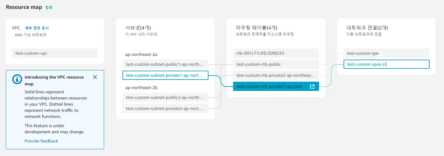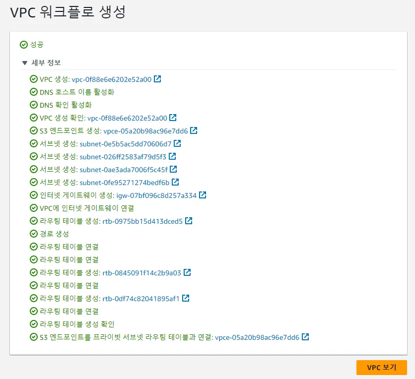 VPC 생성 시 “VPC 만” 옵션이 아닌 “VPC 등” 옵션을 설정하면 위와 같이 전체 인프라가 자동으로 구축된다.