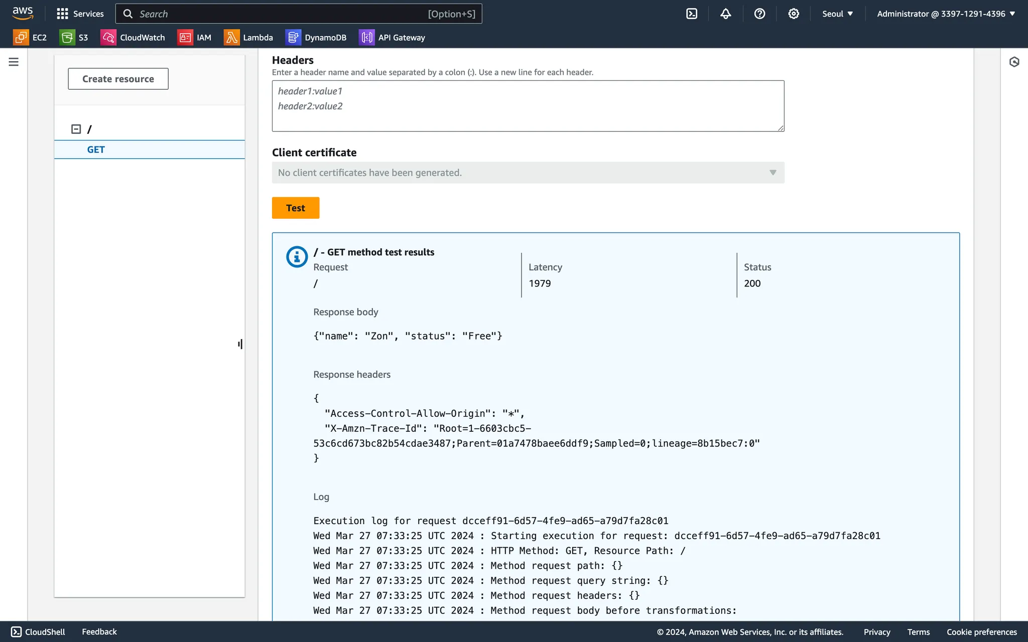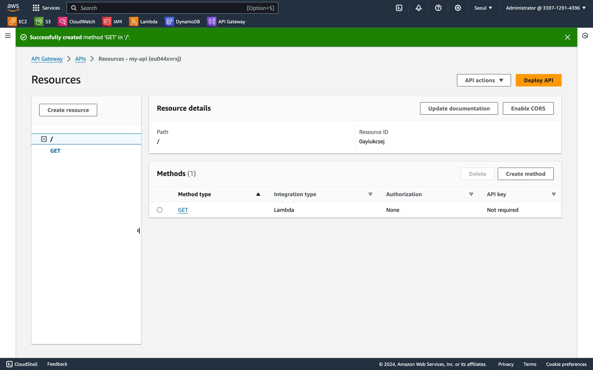 여기까지 됐으면, DynamoDB와 Lambda은 잘 만들어 졌고, 제대로 동작하는걸 확인했다. 이제 인터넷을 통해 람다를 실행할수 있도록 인터넷 주소를 만들어 람다와 연결할 예정이다. 그러기 위해서 API Gateway을 배워보자.