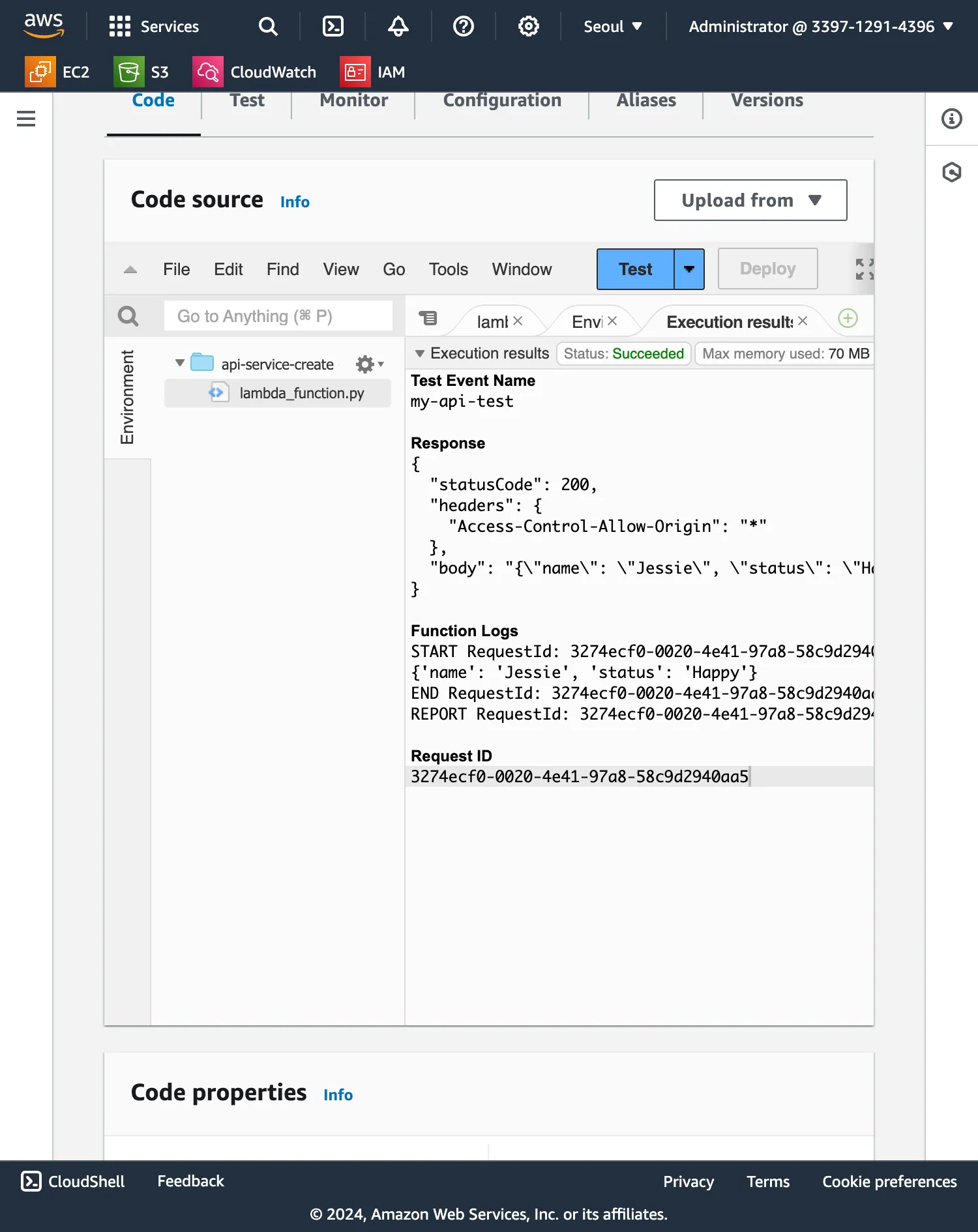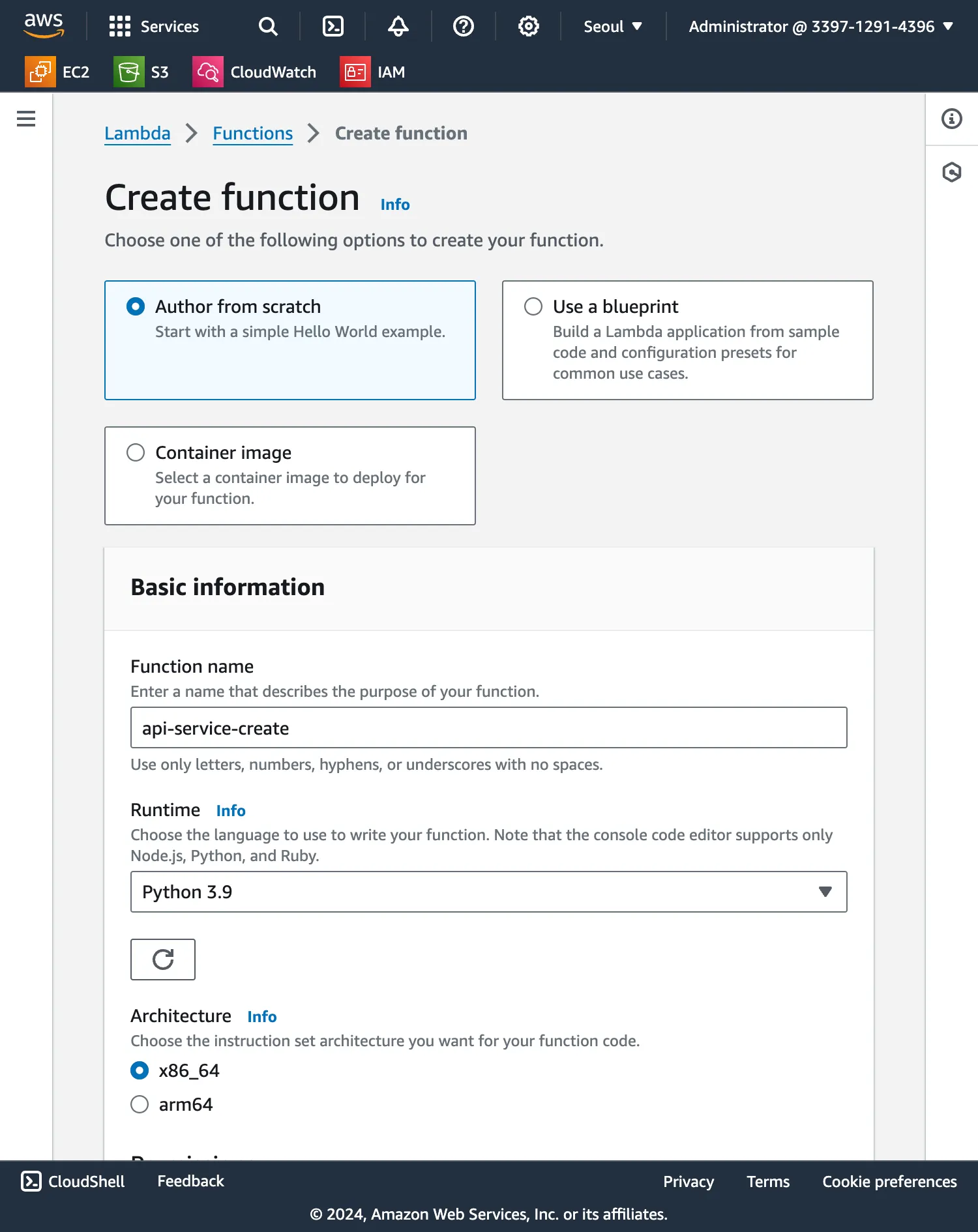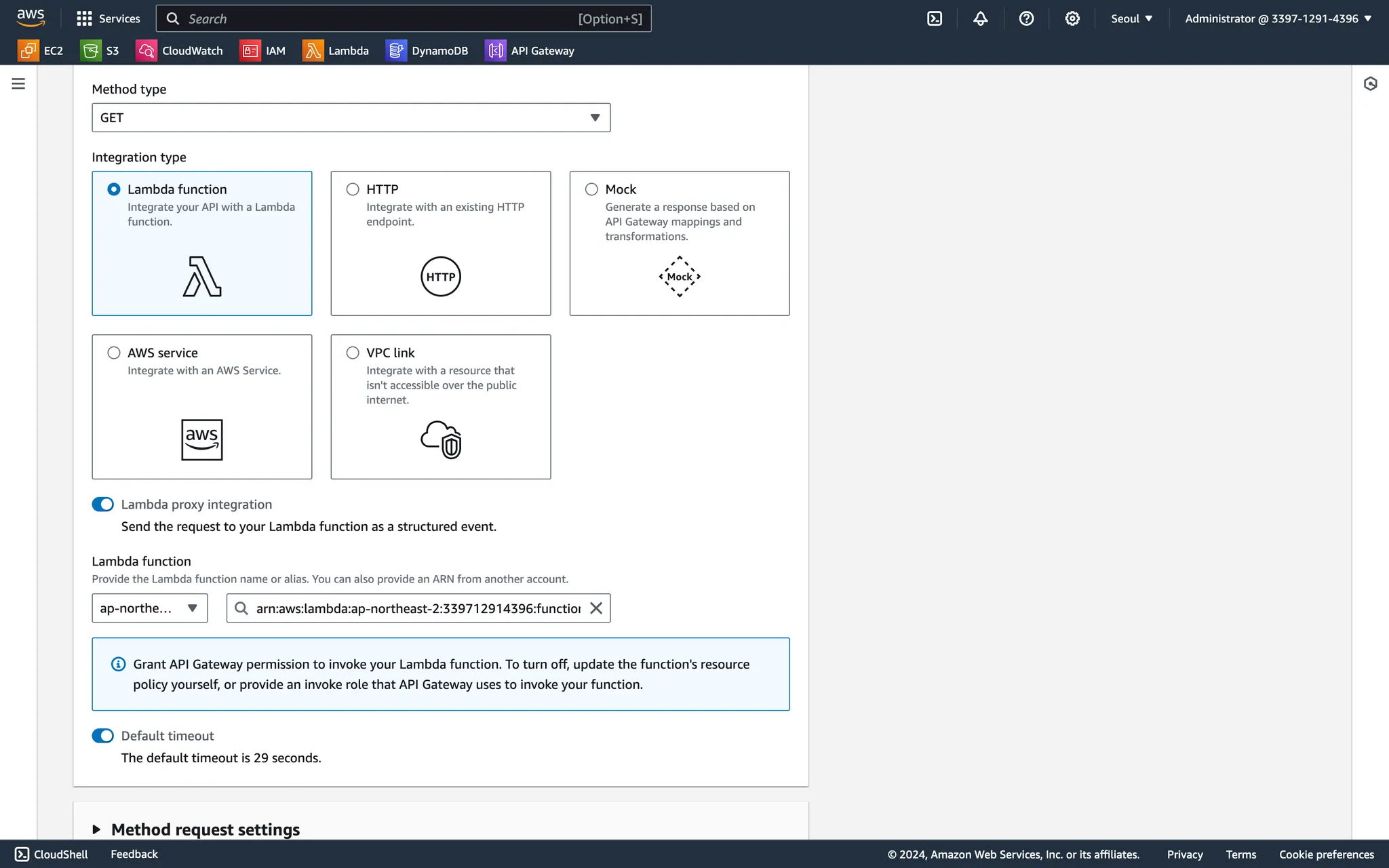 API Gateway 서비스를 생성하고 lambda 와 연결해서 좀 더 완성도 높은 서비스를 만들어 보자.