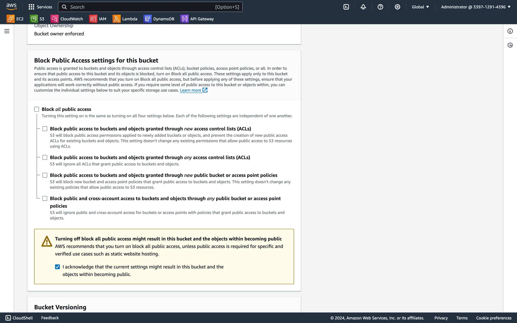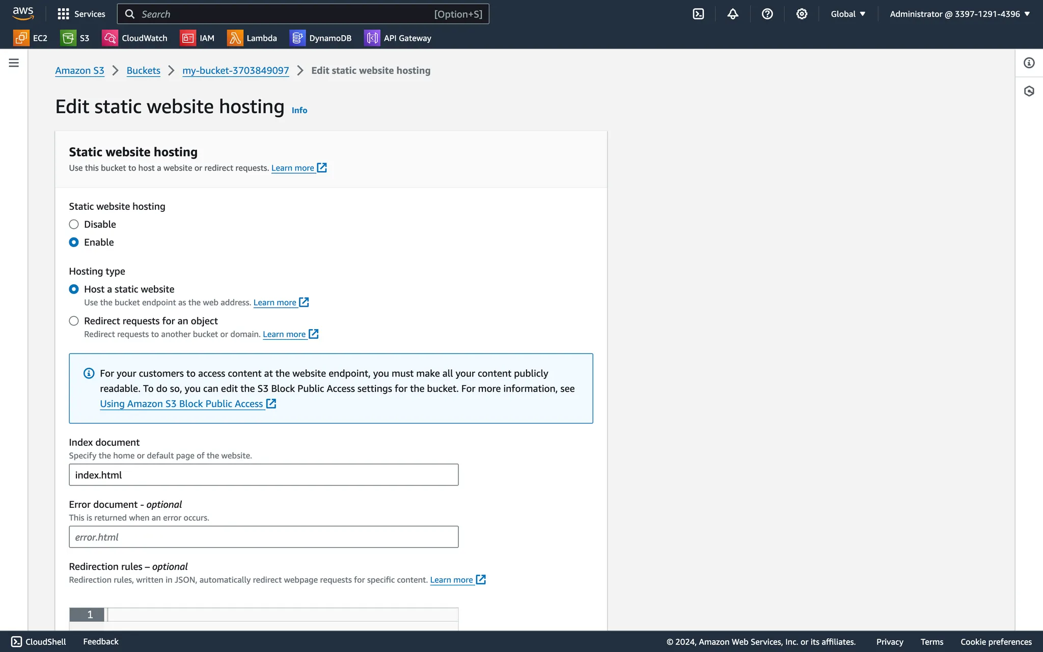 S3 정적 웹사이트 호스팅 기능 활성화하기