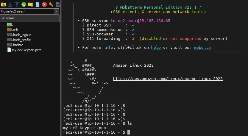 ssh -i my-ec2-keypair.pem ec2-user@프라이빗 IPv4 주소