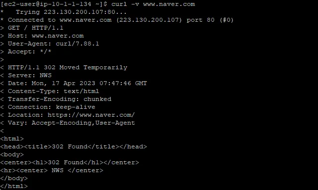 IGW로 잘 통신이 되는지 확인하려면, curl -v <링크>를 입력해보면 된다.