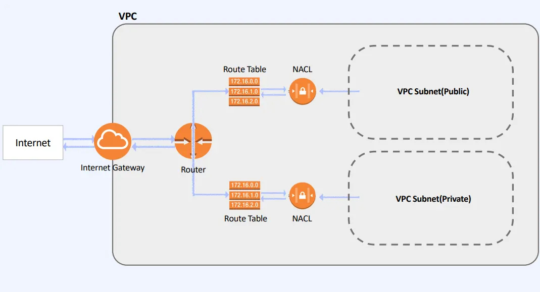 Private Subnet → Route Table → Router → Public Subnet → Router → IGW 순서로 돌아감.