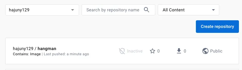 $ docker push hajuny129/hangman # docker image hub에 푸시