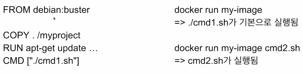 해당 소프트웨어를 이미지로 바꾸기 위한 Docker에게 주는 명령들을 포함