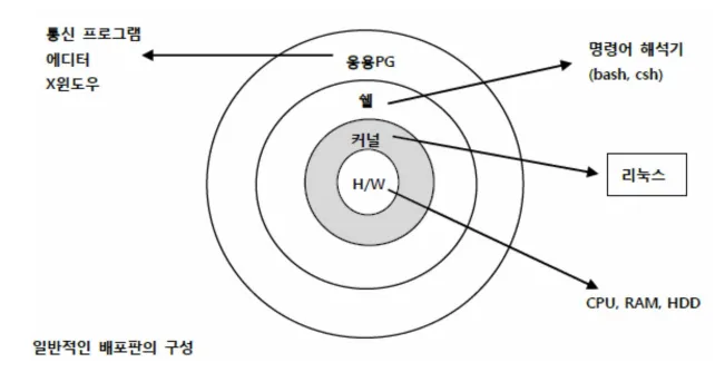 배포판 : 동일한 커널을 보유, 하지만 커널 이외의 것들이 달라짐(쉘, 응용 프로그램)