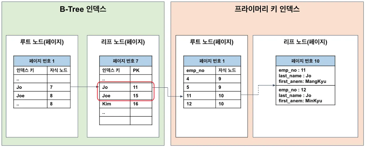 그리고 이때 성(last_name)에만 인덱스가 걸려있는 경우에, 성이 J로 시작하며 이름이 MangKyu인 구성원의 등록일을 변경하는 UPDATE 쿼리를 실행한다고 하자.