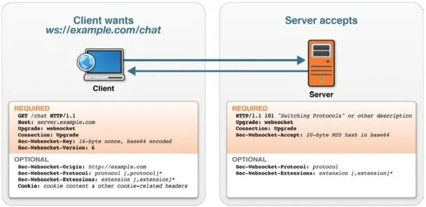 웹 소켓의 첫 번째 과정은 handshake이다. 이때 HTTP 요청을 통해 연결을 설정하고, 이후에는 웹 소켓 프로토콜로 전환하여 통신한다.