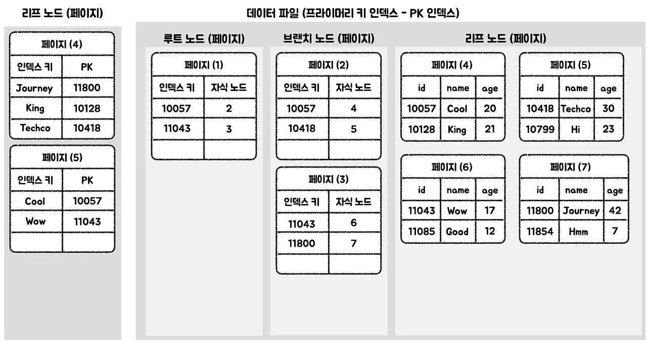 다시 한번 설명하지만, 인덱스에 PK가 저장되는 것은 MySQL의 InnoDB가 클러스터 테이블이기 때문에 이러한 구조를 갖는 것이다. 다른 DBMS의 경우에는 다를 수 있음을 참고하자.