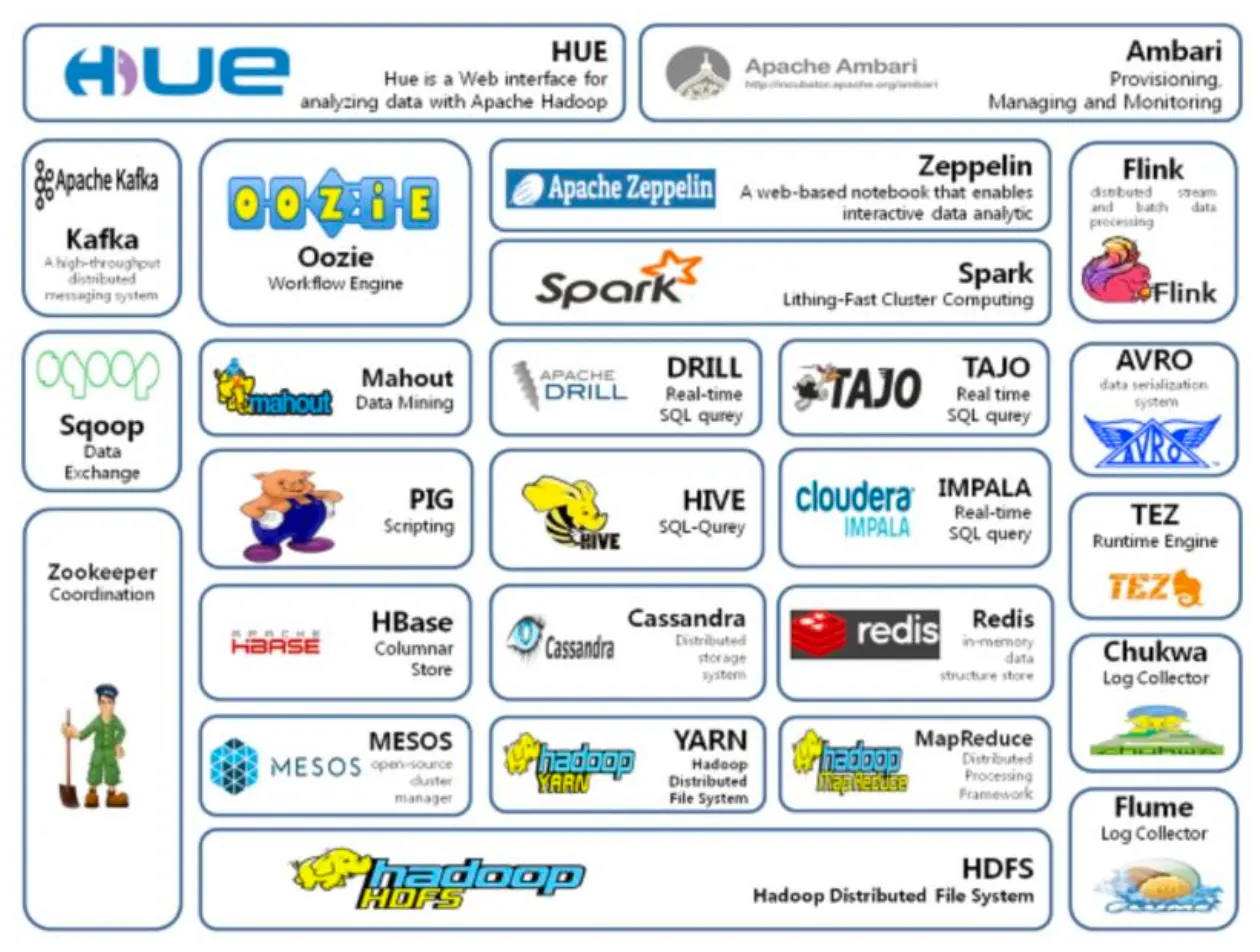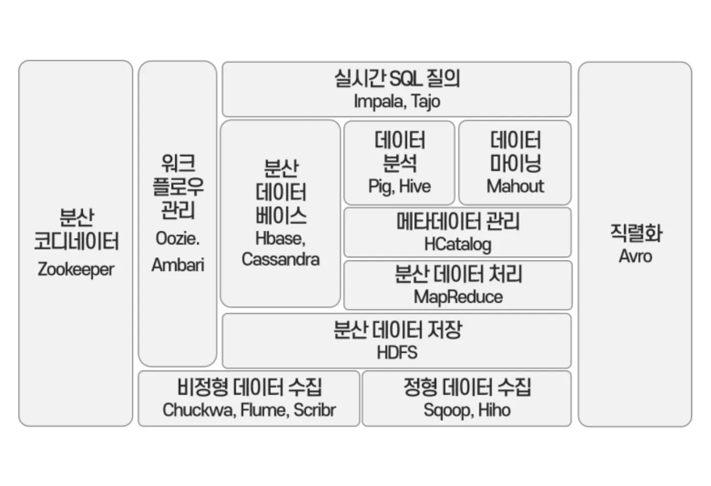 처리 / 분석 | Hive, Pig, Mahout, Impala, Tajo, Spark, Kafka |