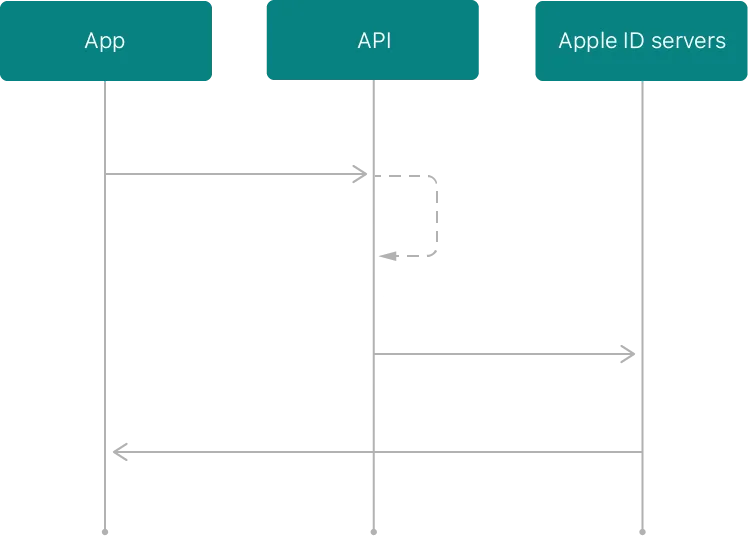 애플은 사용자를 인증하고, 앱이 요청한 권한(예: 이메일, 이름)에 대해 동의를 요청한다.