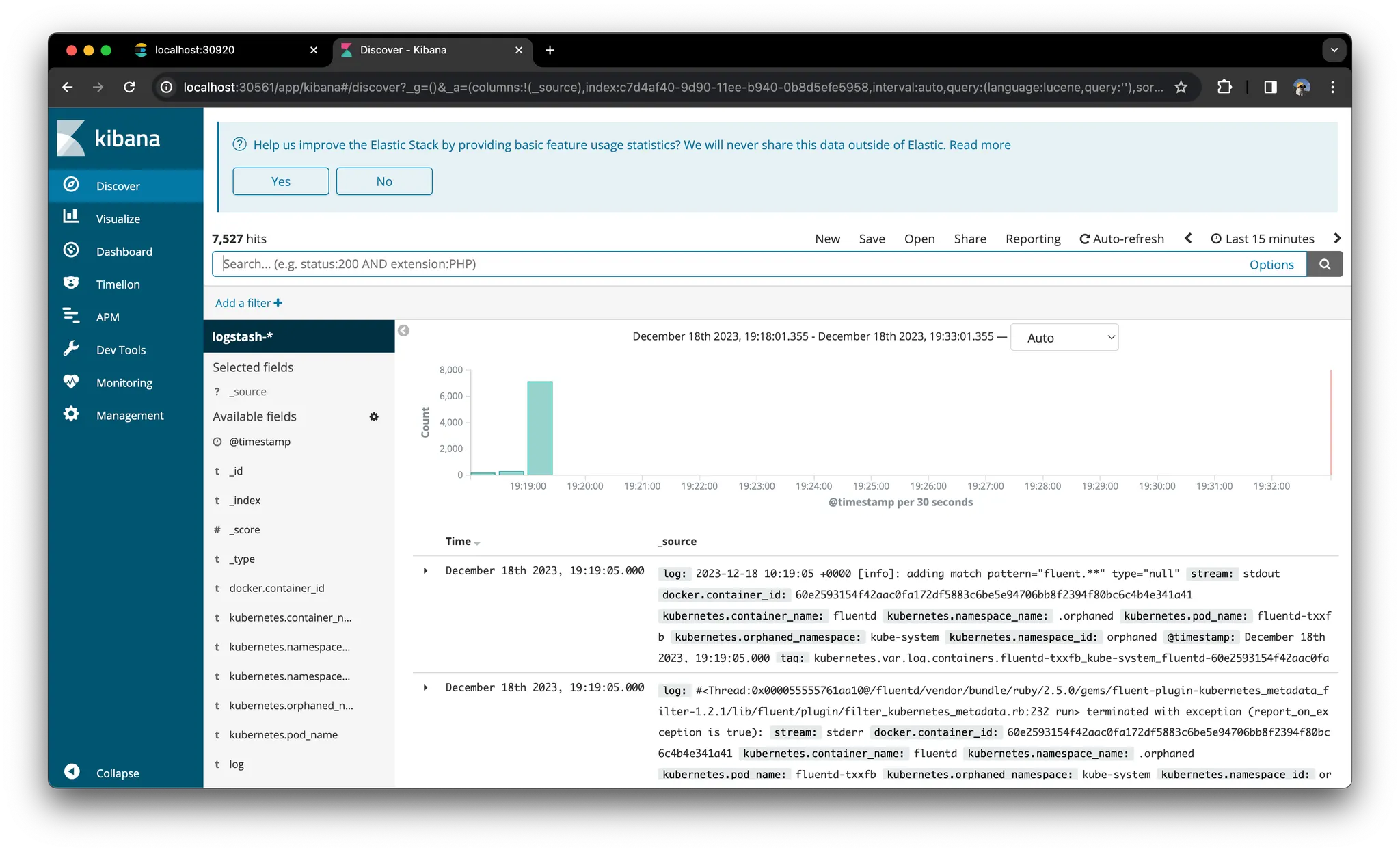 퍼블릭 클라우드 서비스를 사용한다면, 각각에서 제공하는 로그 수집 도구를 사용할 수 있겠지만 그런 서비스를 이용하지 못한다면 오픈 소스 도구로 직접 로그 수집을 해야한다. 여기서는 클러스터 안에 직접 Elasticsearch로 로그 수집 시스템을 구축한 후 로그를 수집 및 확인한다.