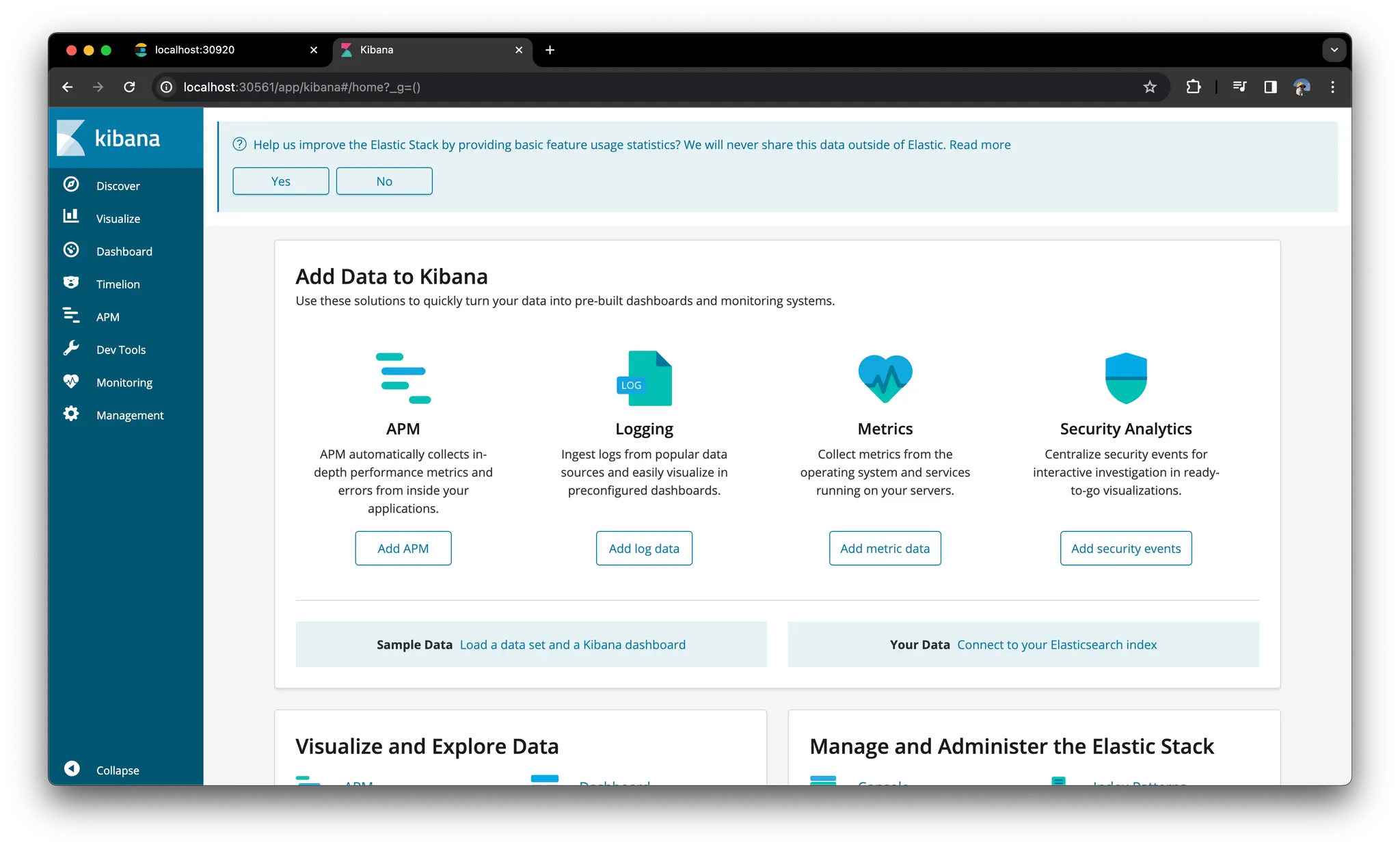Elasticsearh를 실행만 해도 REST API를 이용하면 로그 데이터를 저장하고 검색해서 확인할 수 있다. 이런 로그 데이터를 시각화 하기위해 전용 대시보드 UI인 Kibana를 함께 사용한다.