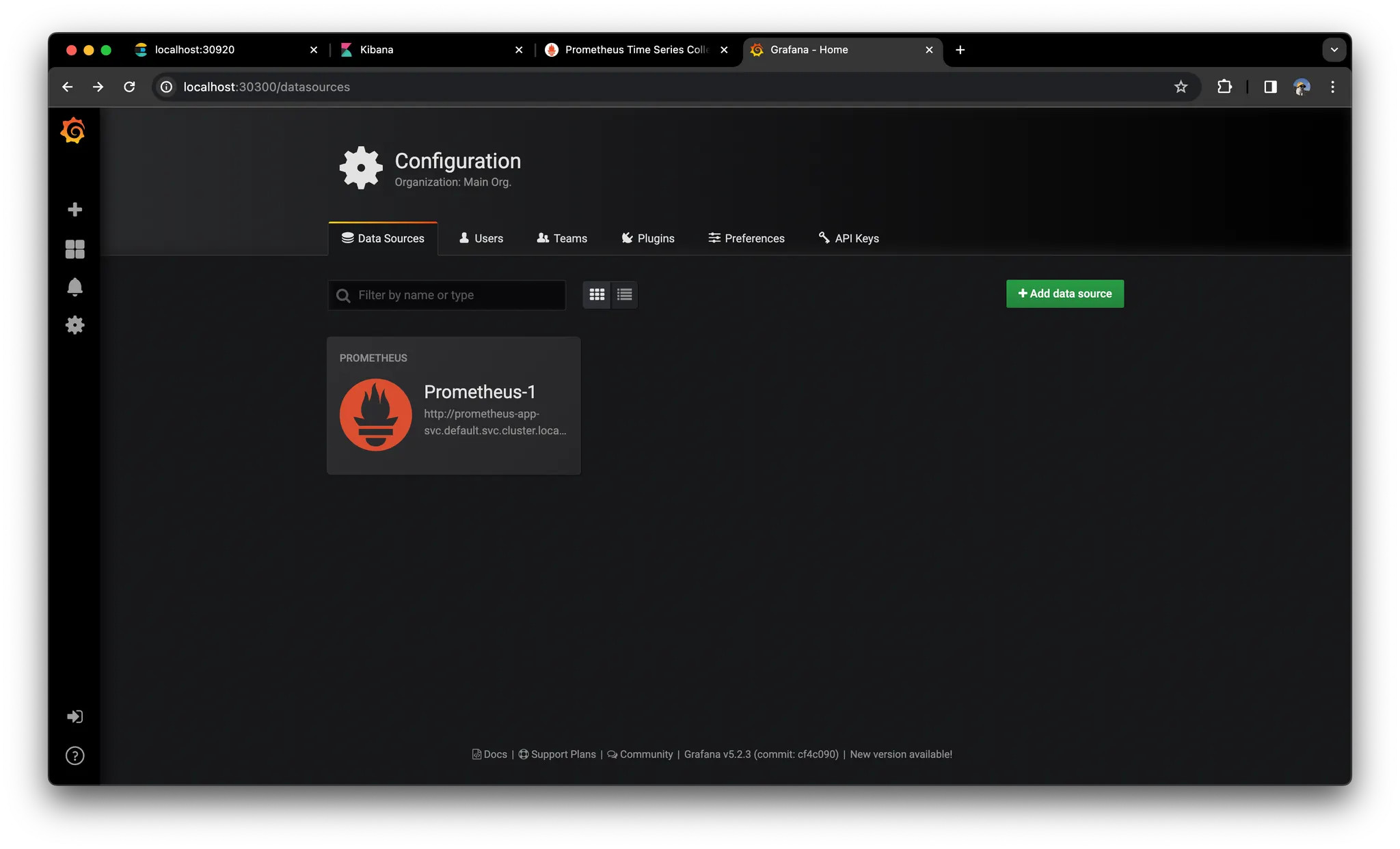 kubectl apply -f prometheus-deployment.yaml 로 클러스터 적용 후, localhost:30990으로 접속하면 프로메테우스의 웹 UI를 확인할 수 있다.