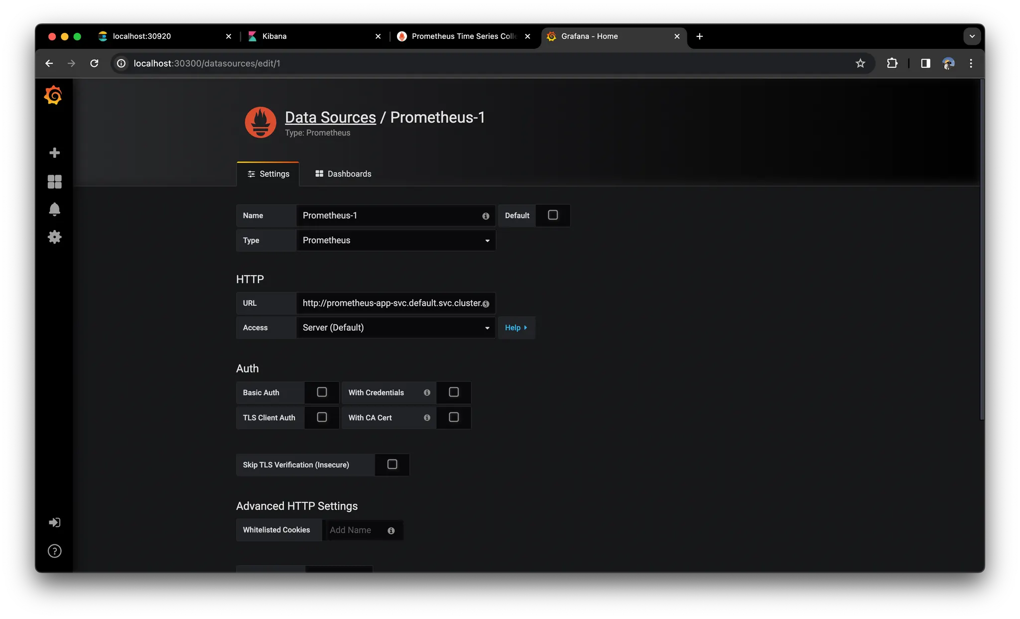kubectl apply -f grafana.yaml 로 클러스터에 적용 후, localhost:30300으로 접속.