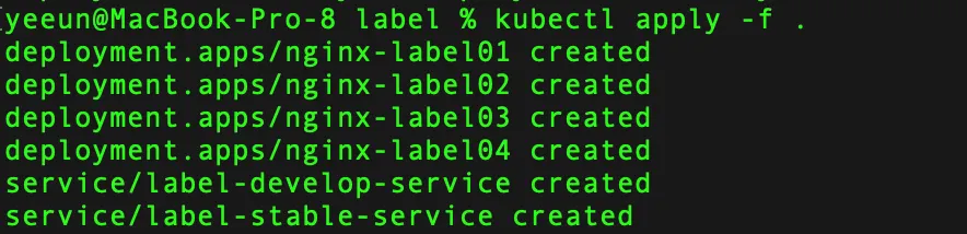 kubectl apply -f . : 모든 파일을 한번에 클러스터에 적용