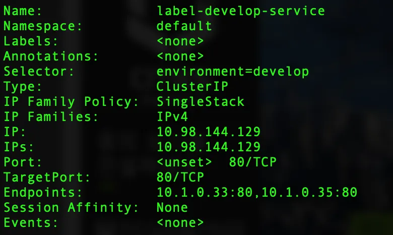 name: label-develop-service # label-service02.yaml: label-stable-service로 설정