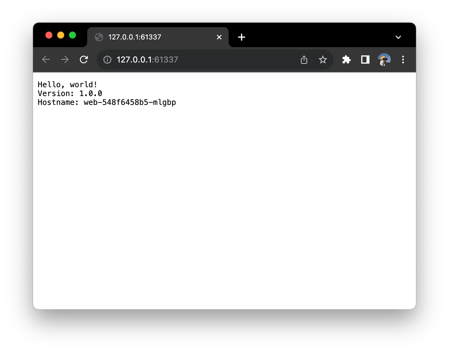 이제 Minikube IP 주소와 노드포트를 통해 샘플 앱에 액세스할 수 있다.