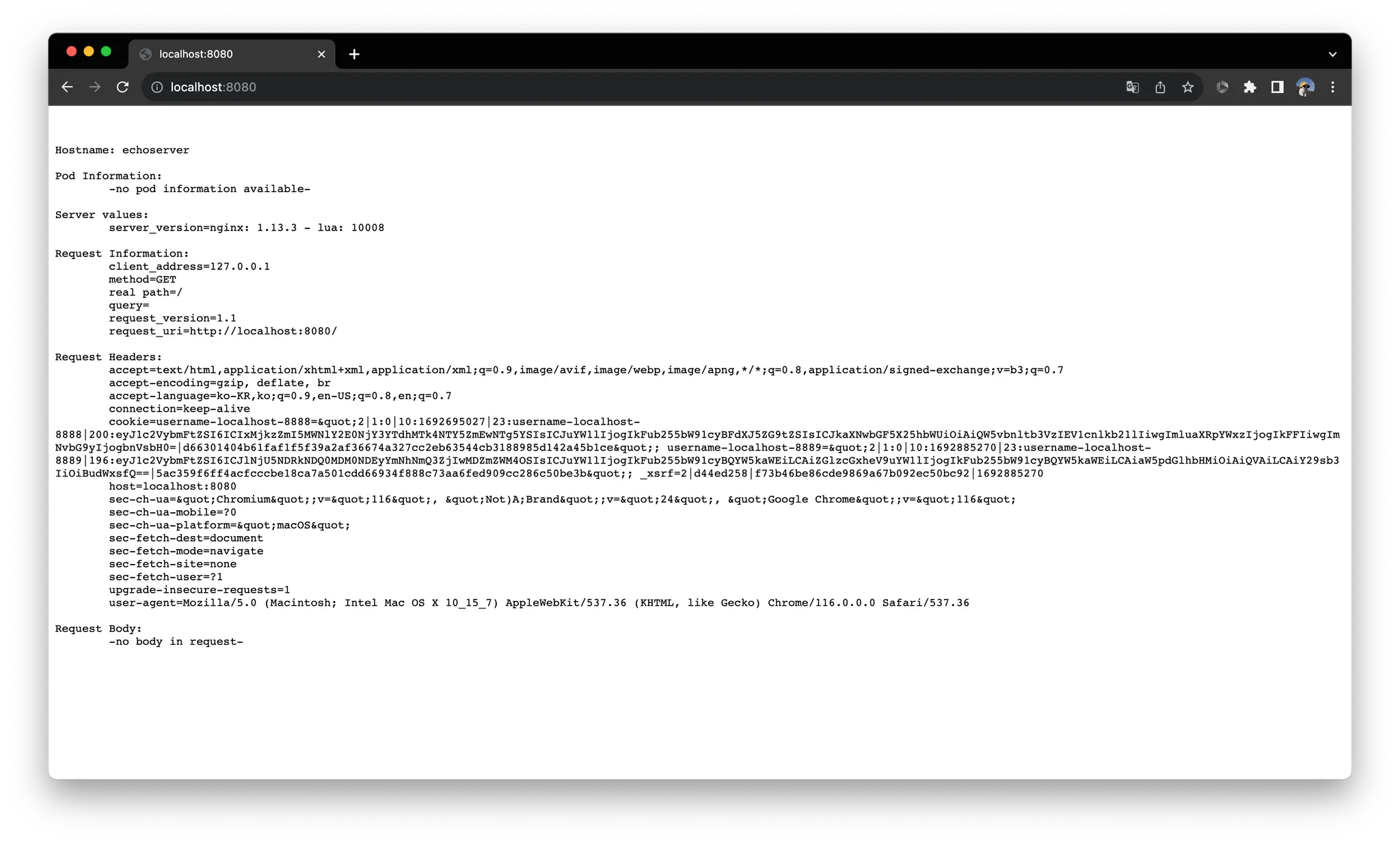 $ kubectl port-forward svc/echoserver 8080:8080