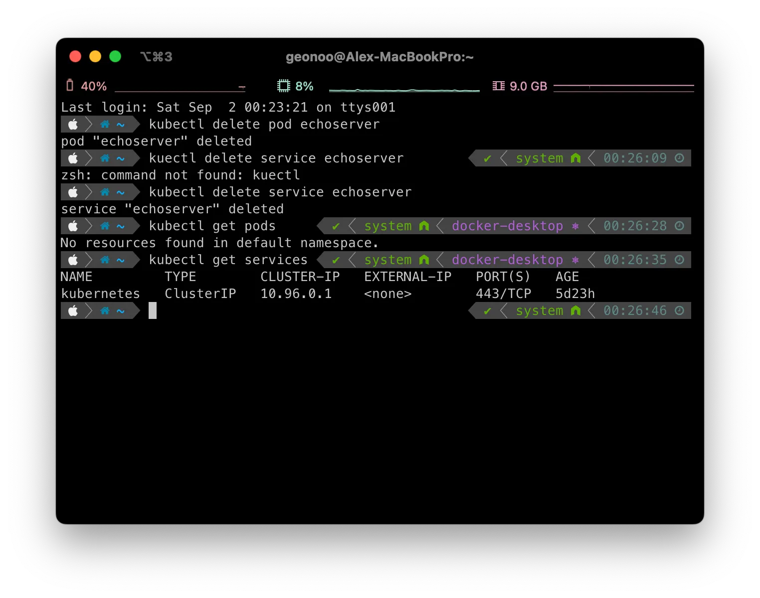 이제 실습했던 파드와 서비스를 삭제한다.
