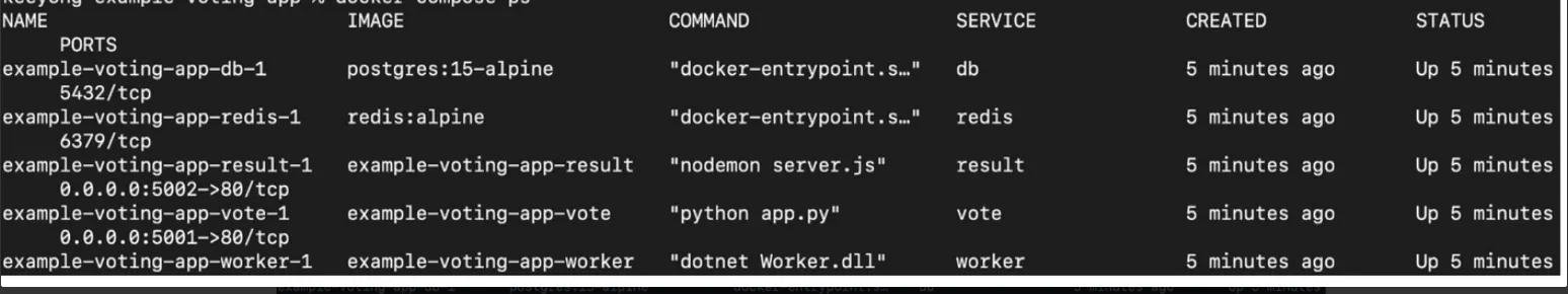 example-voting-app-db-1 | 2023-07-25 15:45:47.023 UTC [1] LOG: database system is ready to accept connections