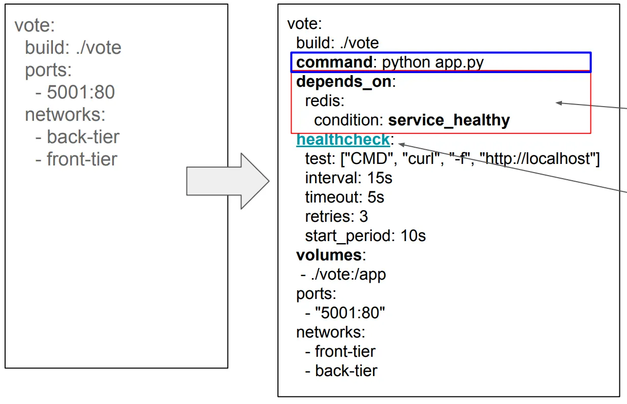 의존성이 건강 상태를 나타내는 healthcheck에 따라 시작 전에 "건강"한 상태인지 확인.