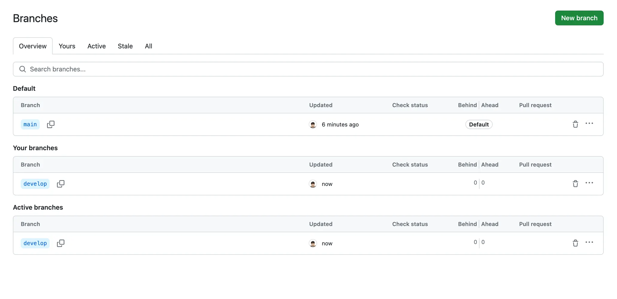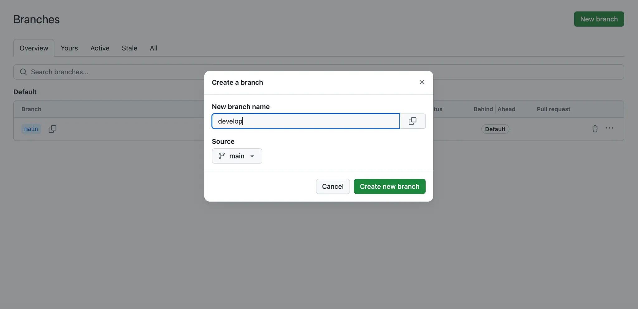 → git checkout -b develop origin/develop 이런식으로 앞의 origin을 떼버리고 싶은 경우.
