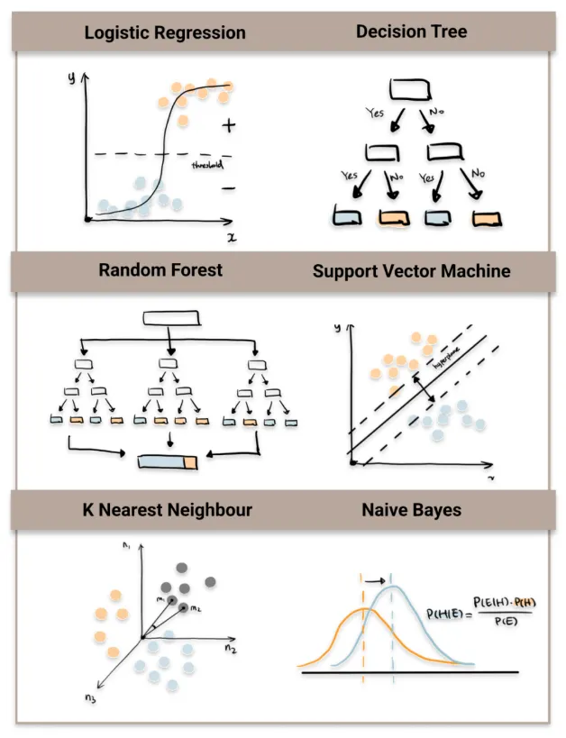 Linear Classifier, Logistic Regression, Random Forest, XGBoost, LightGBM 이 있다.