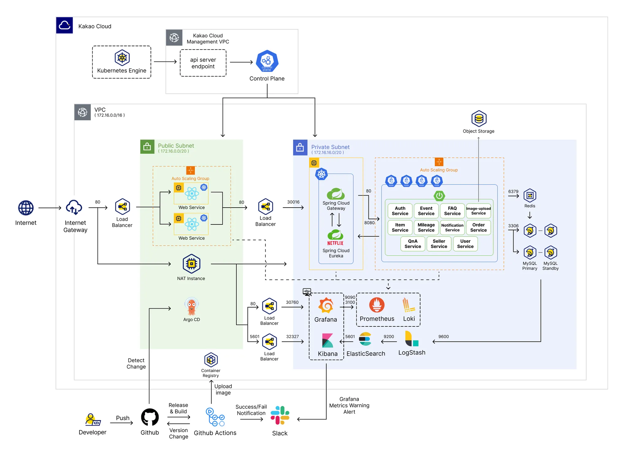 MSA 환경에서의 대규모 웹 서버 운용을 위한 Kakao Cloud 기반 시스템 아키텍처 스케치
