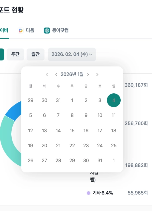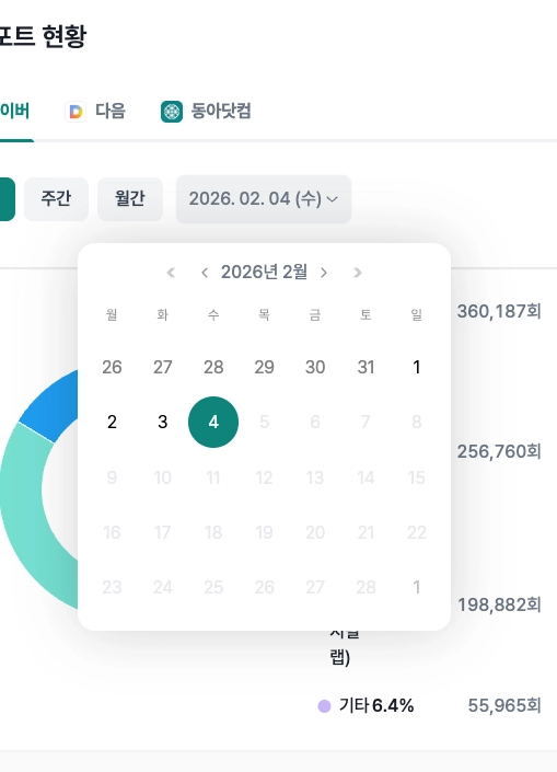 날짜 선택 시 일간, 주간, 월간 모두에서 해당 api 호출 날짜 이외의 날이 함께 선택되어 있는 듯한 효과.